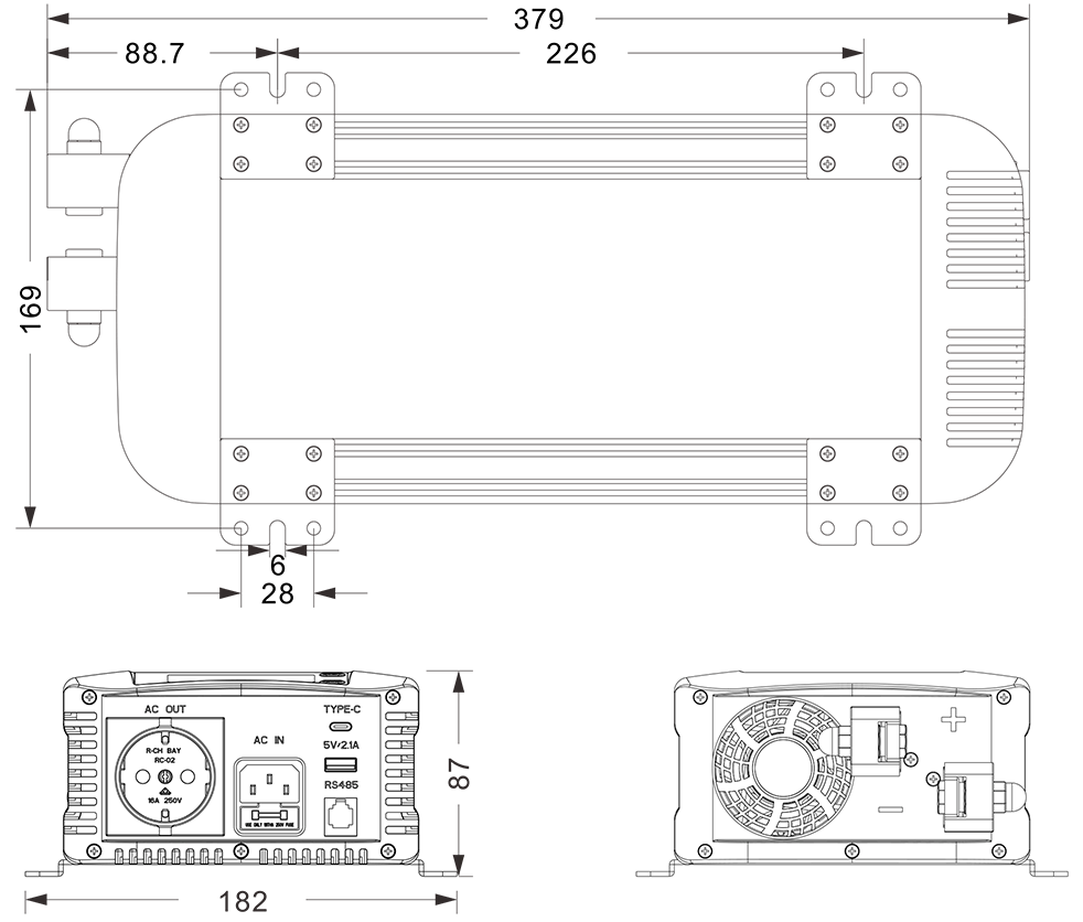 Altri Dimensioni (L×A×P) 379×182×87 mm