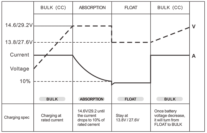 Controllo della batteria (caricabatterie a 3 fasi) Bulk/Assorbimento/Galleggiante