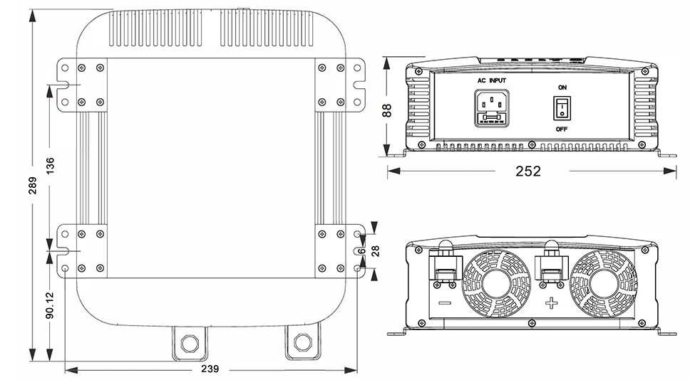 Disegni meccanici: (289x252x88mm)