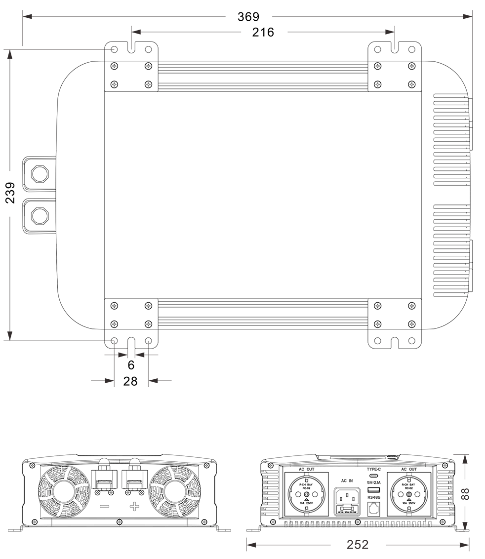 Disegni meccanici: (369x252x88mm mm)