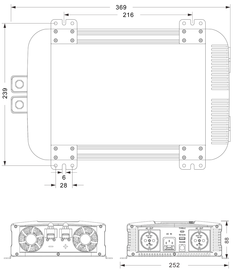 • Inverter a onda sinusoidale pura da 2500 W con funzione di bypass HK2500PTInverter a onda sinusoidale pura da 2500 W con funzione di bypass HK2500PT