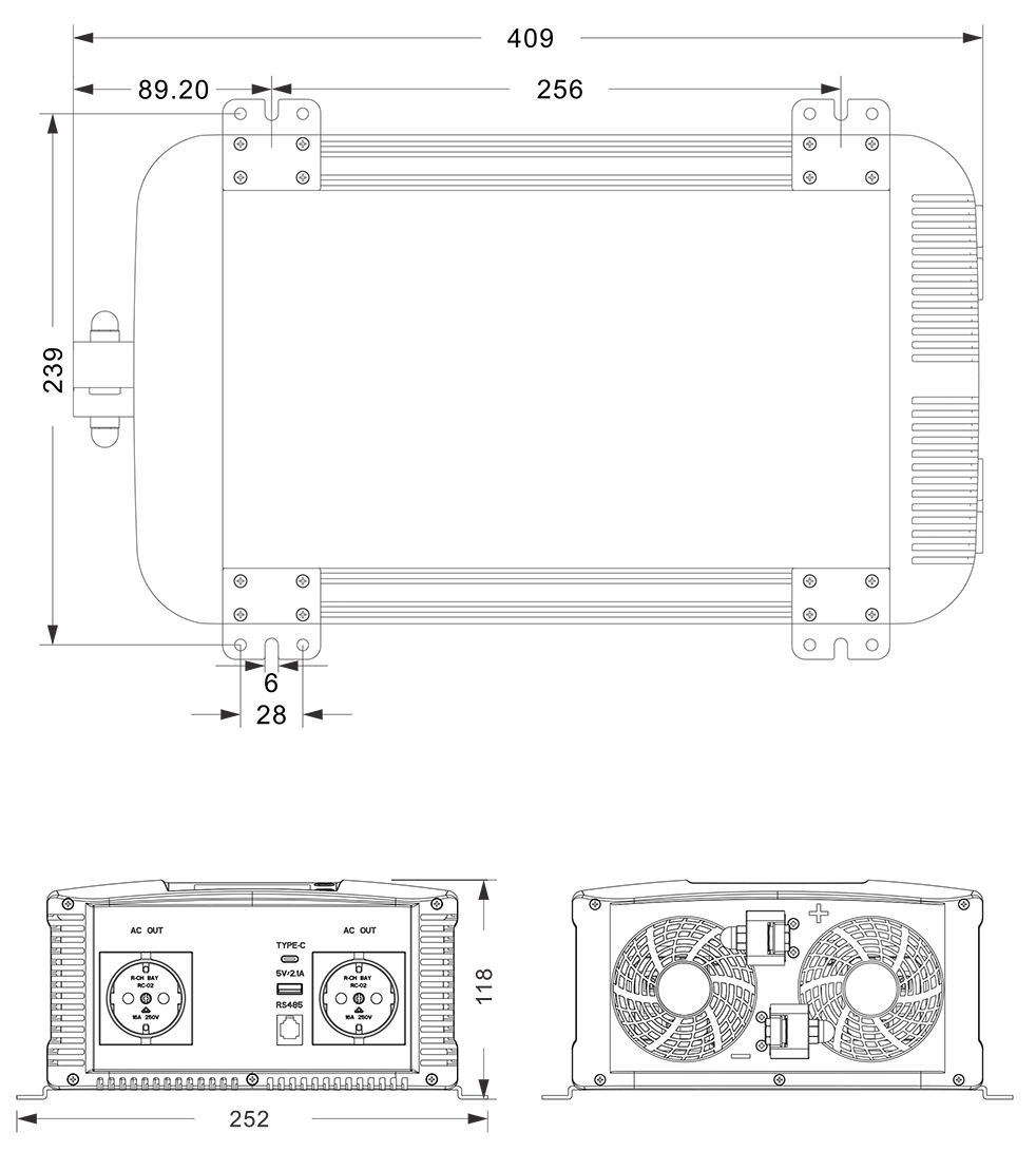 Disegni meccanici: (409x252x118mm)